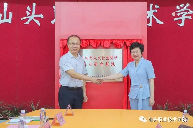 最后,学院党委王小辉书记和市社科联蔡英姿主席共同为汕头市人文社科重点研究基地揭牌。全体参会人员共同见证了汕头市人文社科重点研究基地在我院正式设立,座谈会在欢庆的气氛中圆满结束。