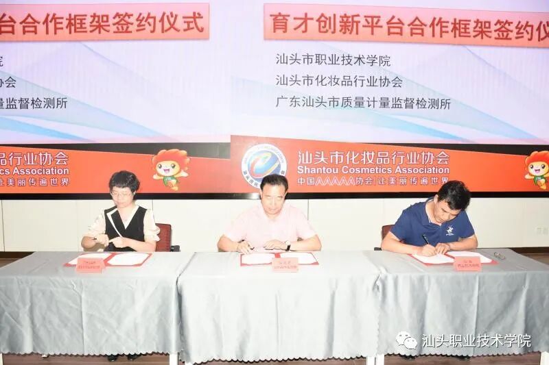 据悉,汕头化妆品协会是“5A”级协会,会员有190多家企业,包括拉芳、名臣和仙乐制药等上市公司,在化妆品行业具有非常大的社会影响力。广东汕头市质量计量监督检测所检测项目多且全面,设备先进技术一流。与上述两家单位建立校企合作,将大大促进学院自然科学系化妆品技术专业的招生、学生培养和就业。