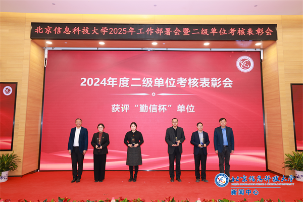 会上,校党委副书记王文杰宣读了2024年度学校二级单位考核表彰决定,对“勤信杯”单位,综合考核优秀等级单位,专项工作贡献奖、跃升之星奖、单项工作奖、特色工作奖获奖单位进行表彰。校领导为获奖单位颁奖。