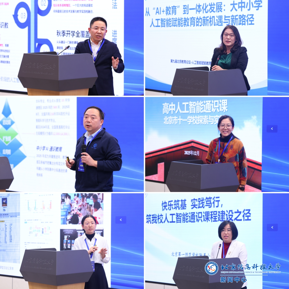 郭福在致辞中指出,人工智能通识教育是未来人才培养的重要基石,更是回应科技革命与教育变革的战略选择。学校立足信息特色优势,以教育教学改革为引领,推动学科专业与前沿技术深度融合,通过开发“AI+智能感知”等优质课程案例、成立虚拟教研室、打造AI教学平台与问答机器人等举措,构建起以国产大模型为内核的跨学科创新育人模式,为一体化AI教育积累了实践经验。本次论坛举行暨联盟成立,是落实立德树人根本任务、构建贯通式AI育人体系的重要举措,打破了学段壁垒、搭建了跨领域交流桥梁,将推动北京大中小学AI教育从“分散探索”迈向“协同共进”新阶段。
