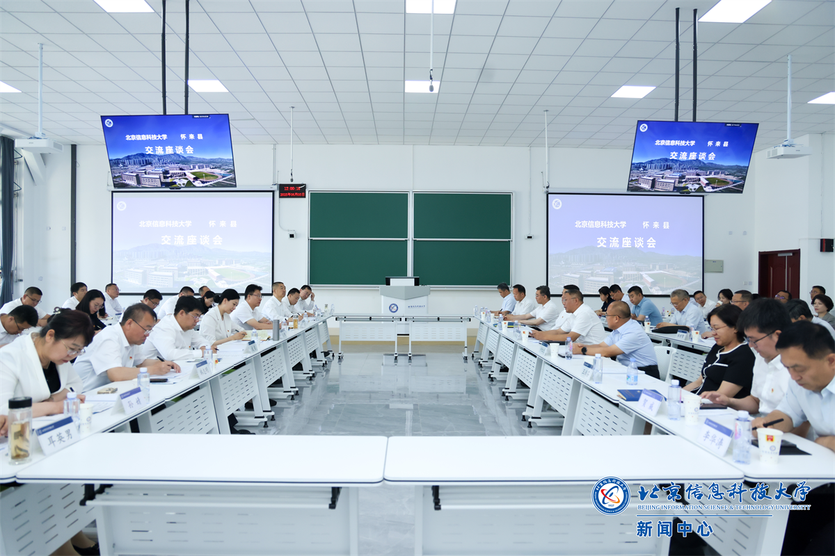 座谈会在北京信息科技大学(张家口)启智楼北楼一层智慧教室召开,解江凌主持。双方首先介绍与会人员,并共同观看怀来县宣传片和北京信息科技大学宣传片。
