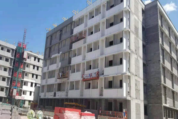 学生宿舍C、D组团完成二次结构施工,正在进行内墙涂料施工和外墙保温施工。