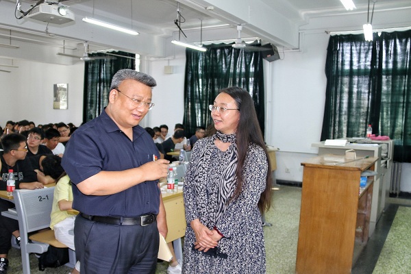 思政课作用不可替代,思政课教师队伍责任重大。新学期伊始,校党委书记王传亮深入教学一线,聆听思政课。9月5日上午,王传亮来到小营校区教室,听取了马克思主义学院舍娜莉老师讲授的《毛泽东思想和中国特色社会主义理论体系》课程。课堂上,舍老师授课内容详实、资料丰富、言语生动,师生互动良好,课堂氛围活跃。王传亮认真聆听课程内容,仔细观察课堂效果,并做好记录。