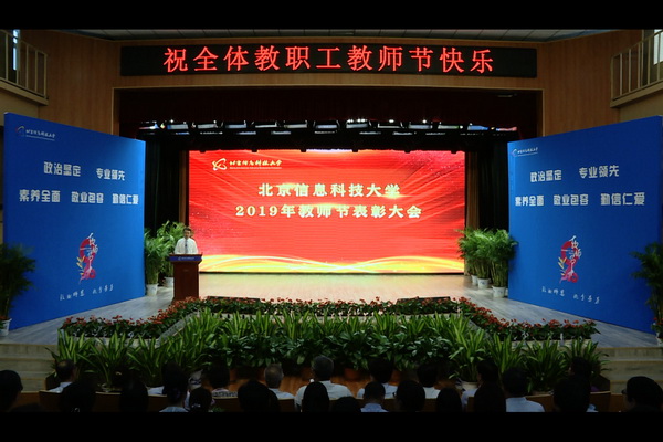9月10日下午,学校在小营校区大学生文化艺术中心隆重召开2019年教师节表彰大会,喜迎中华人民共和国成立70周年,热烈庆祝第35个教师节,表彰为学校发展和建设做出突出成绩的先进集体和先进个人。全体校领导、各教学单位及职能部门主要负责人、获表彰人员、教师代表、学生代表等参加大会。大会由副校长于世洁主持。