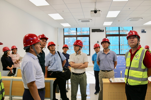 汇报结束后,王永生来到基础教学楼楼顶,视察各组团的建设情况,听取施工单位关于建设进度、施工安全等方面的介绍,并对教室样板间的设置、布局、配置等进行指导。王永生强调,在事关学生学习体验、生活质量等细节上一定要下功夫,兼顾安全、质量和美观,全力推进新校区建设。(供稿:党委宣传部张帆 摄影:苗剑飞 审核:王学文)