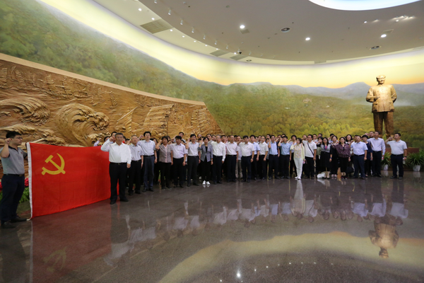 参观学习革命旧址后,循着总书记的足迹,参观人员来到香山脚下的香山革命纪念馆,参观《为新中国奠基——中共中央在香山》主题展览。不忘来时路,方能得始终。在展馆入口毛泽东同志的塑像下,全体参观人员面向党旗,高举右拳,在校党委书记王传亮同志的带领下重温入党誓词,字字铿锵,声声回响,回顾作为一名共产党人的初心,再次许下共产党员的庄严承诺,彰显了全体党员领导干部坚定的政治信念。展览由“进京‘赶考’”、“进驻香山”、“继续指挥解放全中国”、“新中国筹建”、“不忘初心、牢记使命、永远奋斗”五个部分组成,将中共中央在香山期间领导全国各族人民,完成民族独立和人民解放的历史使命、开启中国历史发展新纪元的光辉历程生动呈现。党员干部们仔细聆听,驻足参观,细细品读,回望那段不朽的革命岁月,感触深刻,震撼良久。