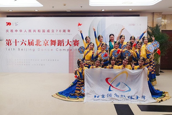 2019年,学校共有百余名师生报名投入到北京世界园艺博览会和北京冬奥会的志愿服务中,积极展现信息科大学子甘于奉献、昂扬向上的精神风貌。2019年,学校在多项艺术比赛中也斩获佳绩:原创藏族热巴舞剧目《吉圣鼓情》在第十六届北京舞蹈大赛中荣获创作三等奖、表演三等奖,孙豆豆老师荣获“优秀指导教师”;国标舞蹈团在首都高校第十一届体育舞蹈(国际标准舞)比赛中荣获一项第一名,一项第二名和一项第四名;在2019爱?乐国际音乐大赛北京赛区比赛中,钢琴艺术团学生党思奇、吴泽泓分获爵士音乐作品演奏组一等奖、中国作品演奏组一等奖,钢琴艺术团指导教师、校团委艺术教育中心肖潇被评为“优秀钢琴导师”。
