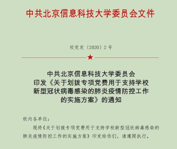 为进一步发挥关键时刻基层党组织的战斗堡垒作用和党员的先锋模范作用,在学校疫情防控工作中充分体现出党组织的关怀和温暖,坚决遏制疫情蔓延势头,坚决打赢疫情防控阻击战。学校党委研究决定从校级管理党费中划拨30万元,专项支持学校疫情防控工作。