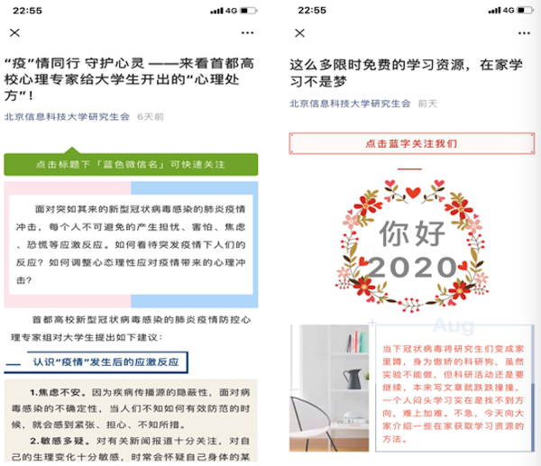 按照“全口径、点对点”与所有学生建立联系的工作要求,加强对研究生思想教育。让同学们充分认识当前疫情防控的严峻形势,加强科学防范,服从学校整体防控工作安排,务必不要提前返校。策划“众志成城、共克时艰——大学生在行动”优秀作品征集活动,传播科学防疫知识,讲述防控工作感人故事,向社会传递正能量,为打赢疫情防控阻击战贡献信息科大人的力量。通过北京信息科技大学研究生会公众号、研究生辅导员微信群、研究生微信群等途径及时发布学校相关通知信息,关注研究生身心健康,加强正面引导,守护自身和家人健康,维护校园和社会稳定。
