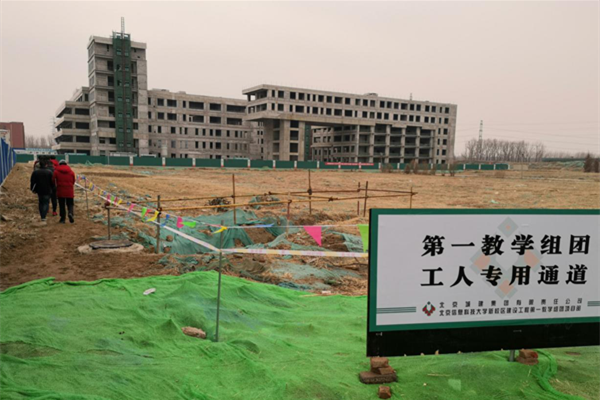精心组织保复工。在主管校领导的亲自带领和部署下,新校区建设指挥部反复组织研究复工方案,分析总包单位需求、研判新校区人员来源和周边形势,通过网上办公、微信联络、视频会议等形式,研究2020年工程建设任务,明确工作目标,调整施工组织,编制防疫复工方案并第一时间上报属地住建部门审批,为新校区尽早复工做好各项准备工作。同时,指导各总包单位严格执行国家相关规定组织劳务人员返京进场,协调做好隔离措施和防控工作,总包单位管理和劳务人员从春节期间60余人逐步增加到1200多人,监理人员也全部到岗开展工作。