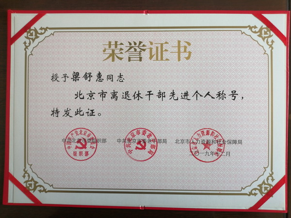 喜报!开元集团网站梁舒惠同志荣获北京市离退休干部先进个人