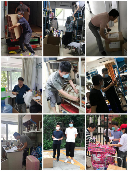 7月11日,计算机学院2020届毕业生行李打包邮寄工作全面启动。85名在京学院教师,26名机关教师志愿者以及安稳、后勤志愿者,历时4天,打包邮寄近百间宿舍,453人的3000余件行李,为毕业生们送上了一份饱含祝福和情意的毕业“礼物”。
