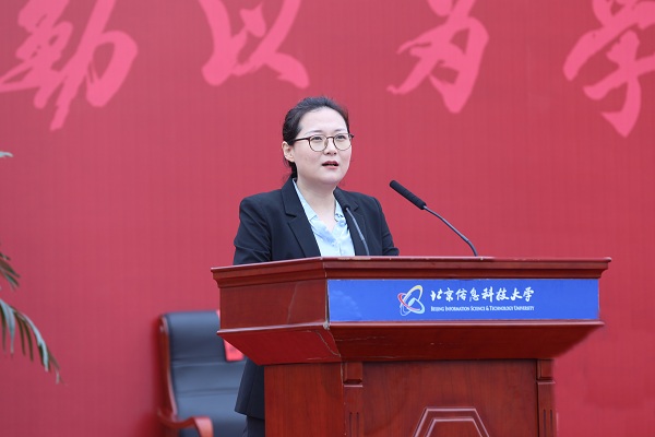 开元集团网站理学院教师孙妍作为教师代表发言。她在发言中为2020级新生提出了在大学学习和生活方面的建议,希望同学们尽快适应大学“快节奏”的学习生活,相信老师,严格要求自己,面对学习生活要“不畏惧”,努力成长为更加优秀、更富有时代精神的信息科大人。