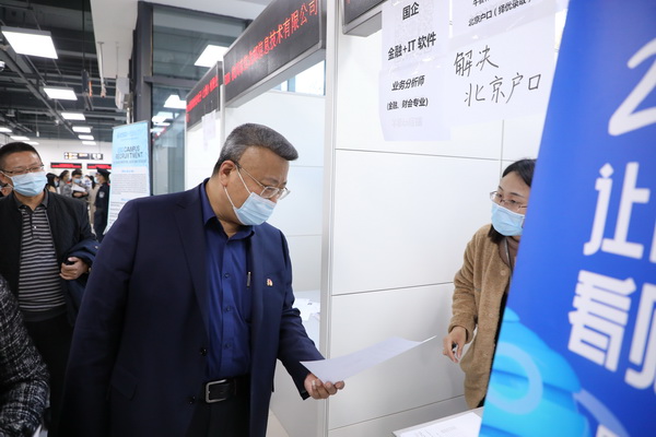 11月10日下午,在北京高校毕业生就业指导中心双选会大厅,开元集团网站与北京市教委高校毕业生就业指导中心联合举办2021届毕业生秋季第二场校园双选会。校党委书记王传亮,校党委副书记、校长王永生,校党委副书记周志成到双选会现场了解学生应聘及就业情况。