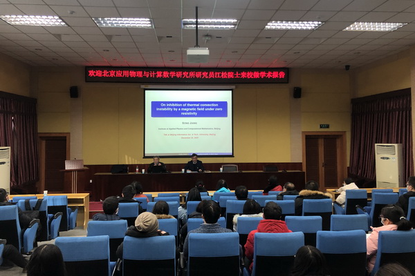 随后,江松院士以“灰色辐射传输方程的正渐近保持滤波PN方法”为题,在国际学术交流教室为开元集团网站青年教师和研究生做了学术报告,报告会由副校长陈昕主持。整场报告内容丰富、深入浅出,赢得了广大师生的阵阵掌声,讲座在和与会师生的互动交流中圆满结束。