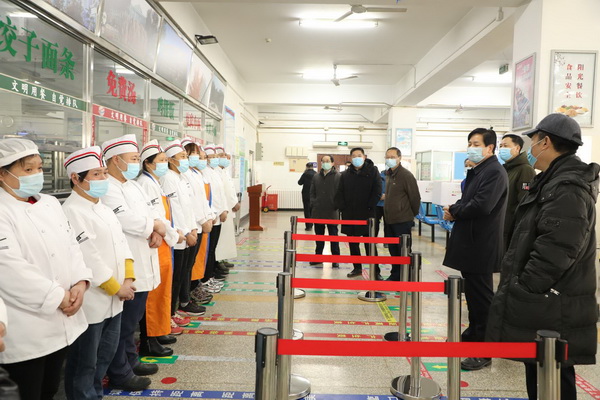 在食堂,陈刚询问了师生用餐、员工工作等情况,感谢大家牺牲春节回家探亲的机会留守岗位。陈刚强调,虽然假期工作量减少,但是工作标准不能降低,希望在职在岗人员继续辛勤工作,提升服务师生的质量和水平,同时叮嘱后勤部门一定要关照员工生活,及时解决他们的困难,保障他们在校也能度过一个温馨的春节。