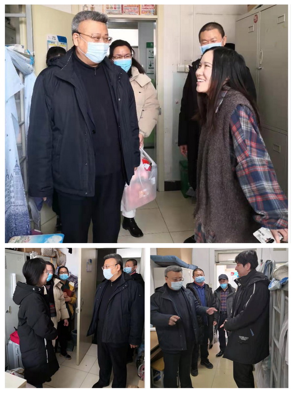 2月4日农历小年上午,校党委书记王传亮来到学生公寓检查寒假期间疫情防控工作,并走访慰问留校学生。校党委副书记周志成,学校党办、校办、研工部、后勤处等相关职能部门负责人一同检查慰问。