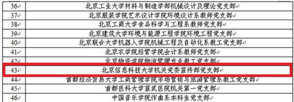 日前,教育部办公厅公布首批全国党建工作示范高校、标杆院系、样板支部培育创建单位验收结果名单,北京信息科技大学机关党委宣传部党支部顺利通过验收。