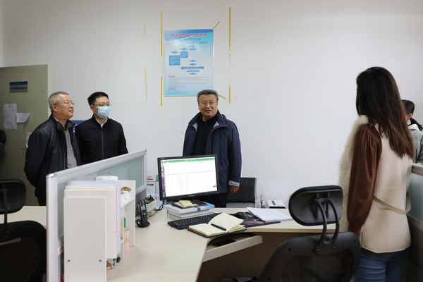 王传亮、王永生来到教务处学籍与学务中心,与中心教职工亲切交谈,详细询问学生咨询和业务办理情况,希望中心教职工克服困难,赓续奋斗,全力保障线上教学,为学生返校做好充分准备。