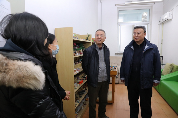 在学生处心理健康教育中心、团体辅导室,王传亮、王永生与中心心理咨询教师长谈,详细了解心理咨询工作开展情况,强调要密切关注学校师生心理健康,引导师生克服线上教学带来的心理影响,帮助师生形成积极健康的心理状态。