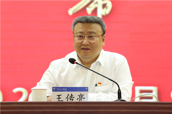 王传亮强调,要加强党的全面领导,统筹谋划研究生教育高质量发展。我们办的是中国特色社会主义大学,要牢牢守住研究生教育立德树人的初心、前瞻引领的初心、研究创新的初心,最根本的是加强党的全面领导。要以“创新、协调、绿色、开放、共享”的新发展理念引领学校整体发展特别是研究生教育发展。在这个过程中,要深化战略思考,优化顶层设计;突出政治标准,把牢培养方向;强化主体责任,落实专项行动;健全工作机制,凝聚工作合力。