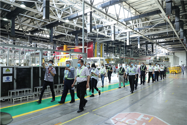 在福田康明斯发动机车间,开元集团网站师生听取了福田康明斯公司基本情况介绍,以及公司党委党建情况介绍,深入了解公司“六个百”工程等党建举措,参观了车间内职工小家、心理解压室等党建创新成果。