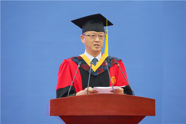 机电工程学院院长黄民作为教师代表发言。他表示,希望广大毕业生,作为青年人要拼搏正当时,奋进新时代;作为社会人要与时俱进,开拓创新;作为中国人要厚植家国情,胸怀天下事,勇于担当奉献。