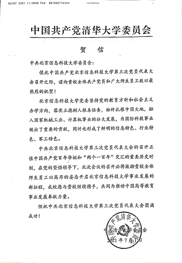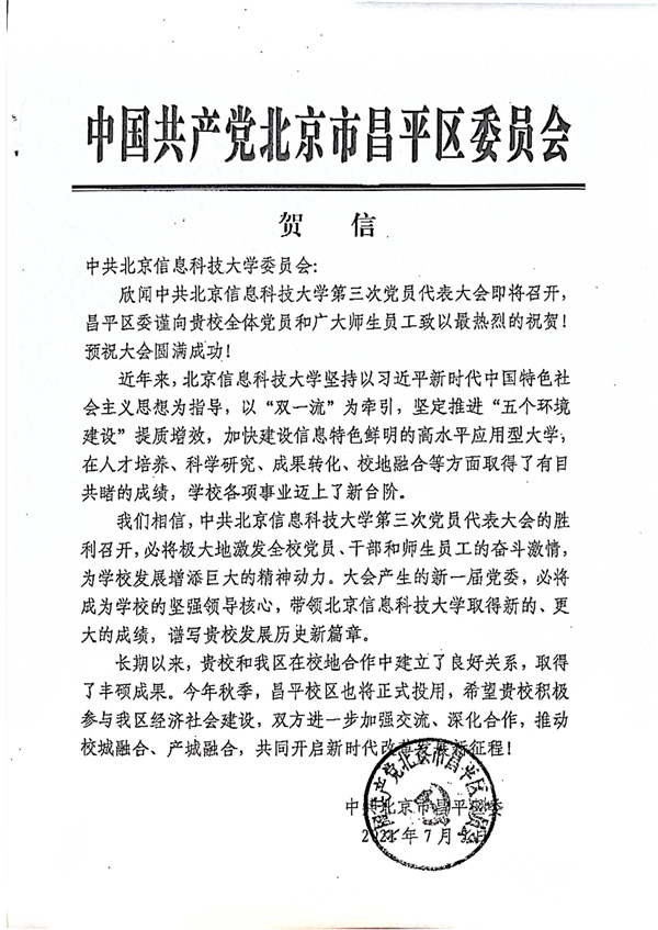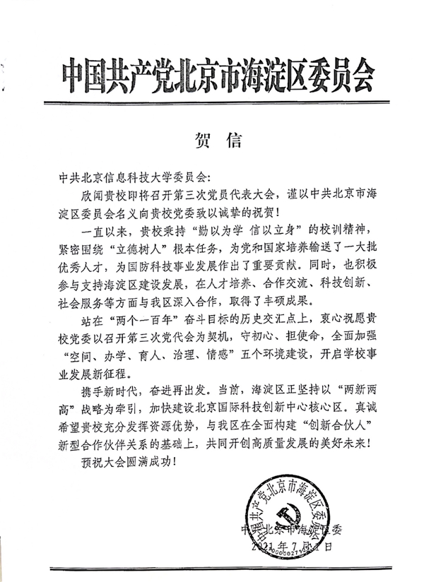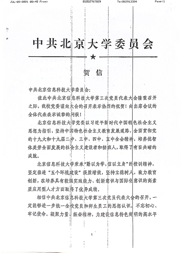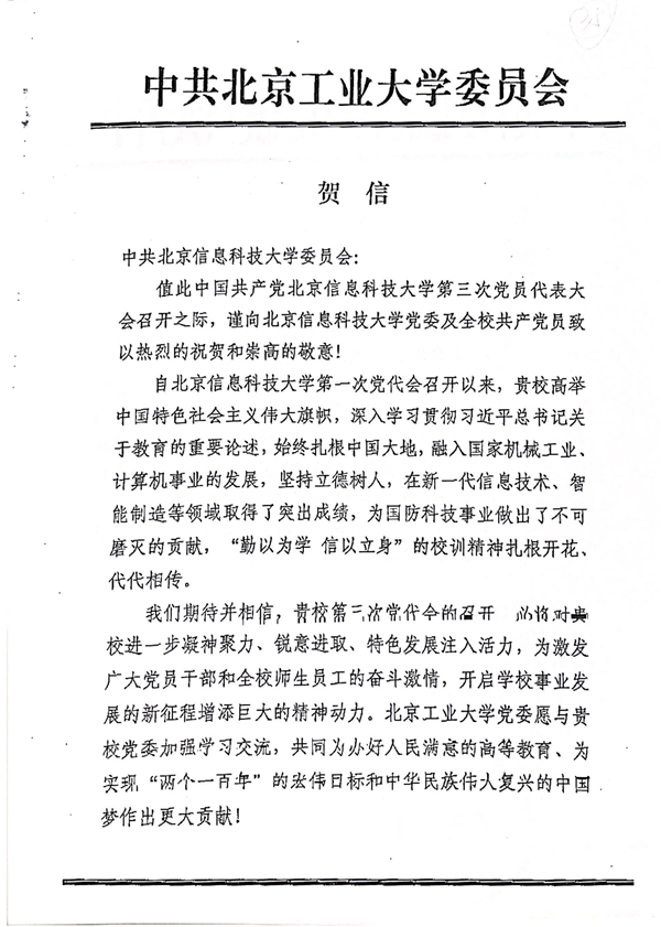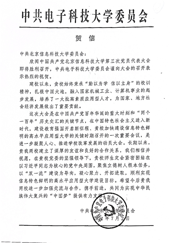 【第三次党代会】学校第三次党代会收到的贺信贺电