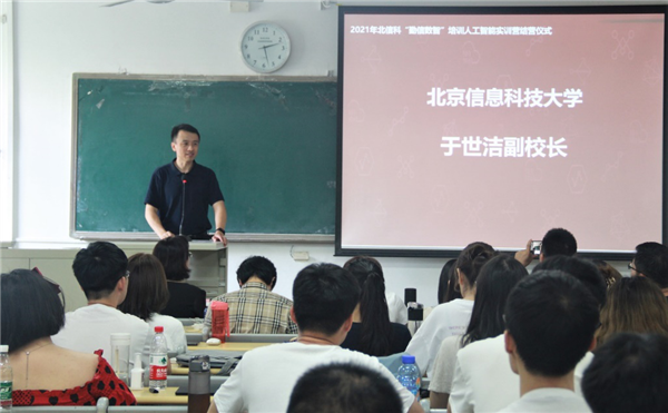 北京大数据研究院研究员欧高炎介绍了此次培训的方案设计思路和组织开展情况,充分肯定了同学们在培训中的表现。他指出,经过多年探索与积累,北京信息科技大学在大数据、人工智能等信息技术前沿领域的人才培养已形成自身特色,同时已对国内同类高校该领域的人才培养产生了很好的辐射与示范引领作用。