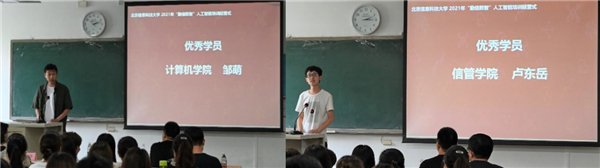 结营仪式上,计算机学院研究生邹萌和信管学院研究生卢东岳作为学员代表分享了培训心得。同学们表示,非常感谢学校提供这样一个学习机会,拓宽了视野,提高了利用前沿技术解决实际问题的能力;同时,为自己研究生阶段科研工作的开展提供了新思路。