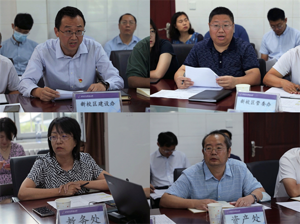 新校区建设办主任崔凯汇报新校区建设工作进展情况;新校区管委办副主任程立军汇报新校区搬迁工作进展情况。教务处处长米洁、资产处处长胡滔、安稳处处长龚汉明、后勤处处长郑召义、信息网络中心陈小磊就本部门相关工作进展和待解决问题进行了汇报。新校区管委办王继强介绍新校区整体搬迁工作专班具体职责和分工。
