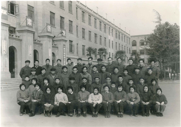 (图3 1986年教学楼前新老院领导合影(后排左2))