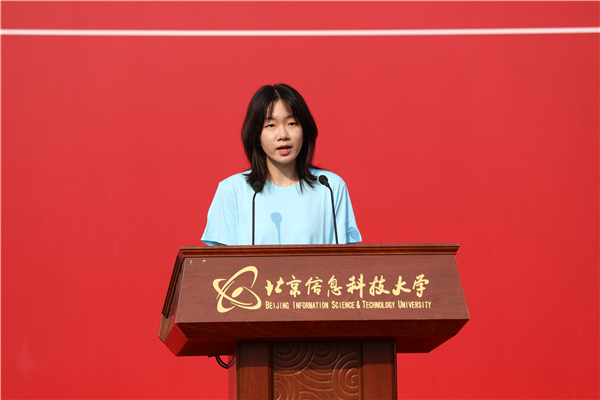信息与通信工程学院曹晓芃同学作为新生代表发言。她表示,从信息科大走出的一届届优秀毕业生,秉承着生生不息、代代相传的“勤以为学,信以立身”校训精神,为社会创造着无限价值。她号召全体新生:作为信息科大人,当以创新为源,勇于实践,让潜心问学成为青春逐梦的基石;当胸怀天下,矢志报国,让爱国励志成为梦想远行的航标。