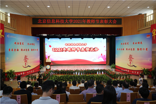 9月10日下午,学校在小营校区大学生文化艺术中心隆重召开2021年教师节表彰大会,热烈庆祝第37个教师节,表彰为学校建设发展作出突出贡献的先进集体和先进个人。学校领导班子成员、各职能部门及教学单位负责人、获表彰人员、教师代表、学生代表现场参会。大会同时进行线上直播。表彰大会由校党委常委、副校长于世洁主持。