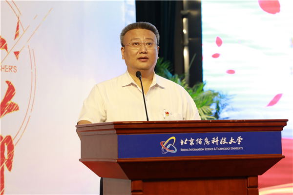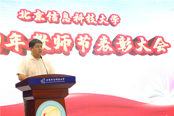 北京市科学技术进步奖获得者、北京市传感器重点实验室副主任秦雷作为教师代表发言。他表示,信息科大人注重实干、勇于拼搏,正是一代又一代信息科大人的不懈奋斗铸就了学校发展的优异成绩。秦雷倡议青年教师,要继承弘扬老一辈信息科大人的光荣传统,勇于挑战科技高峰,解决核心的关键科学问题,做出国际一流的高水平科技成果,为建设信息特色鲜明的高水平大学而努力奋斗。