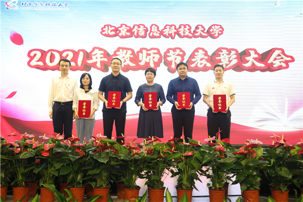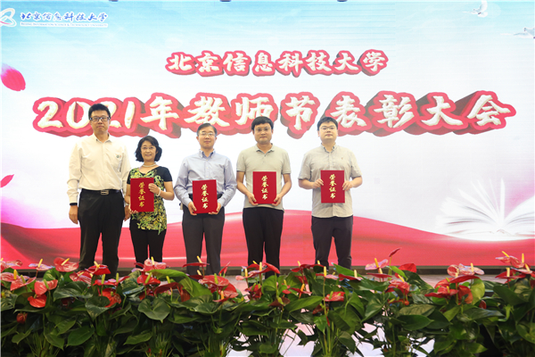 与会校领导分别为国家级青年人才、北京市级教学名师、北京市高等学校青年教学名师、北京市先进工作者、中国仪器仪表学会科学技术进步奖、北京市科学技术奖·科学技术进步奖、中国商业联合会科学技术奖·全国商业科技进步奖荣誉获得者;享受政府特殊津贴、国家级一流课程、国家级一流本科专业建设点、市级(示范性)职工创新工作室、中国产学研合作创新成果奖、北京市一流本科专业建设点荣誉获得者;北京市海外人才、2020年北京市高校优秀本科育人团队、北京市城乡社区共建先进个人、2020年北京市高校毕业生就业工作先进个人、2020年北京市高校优秀本科教学管理人员荣誉获得者;北京市青年教师基本功比赛、北京市辅导员素质能力大赛、第一届北京高校教师教学创新大赛、北京高校就业创业金课、北京高校优质本科教材课件获奖者;北京高校优质本科课程、学科竞赛国奖指导教师、学科竞赛省部级奖指导教师、北京市优秀创业团队指导教师荣誉获得者;北京市本科生优秀毕业设计(论文)指导教师、校级优秀毕业设计(论文)指导教师、优秀硕士学位论文指导教师荣誉获得者;校级教学名师、校级青年教学名师、校级师德标兵、校级优秀主讲教师、校级优秀辅导员、优秀班主任荣誉获得者;校级优质课程、校级班主任职业能力邀请赛、校级教学创新大赛、校级青年教师基本功比赛获奖者;后勤保障、安稳保障先进个人;从事教育事业三十年教职工颁奖。