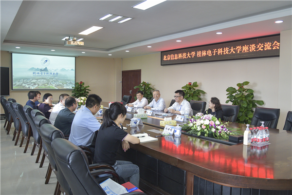 徐华蕊对王永生一行的到访表示热烈欢迎。他表示,桂林电子科技大学和北京信息科技大学在共同隶属于电子部期间结下了深厚的友谊,近年来双方也在各方面合作密切。希望双方深化合作,互助共赢。随后,桂林电子科技大学相关部门负责人对人才培养、科技创新、学校治理能力、管理方法等领域进行了工作介绍。双方还就“一带一路”文化教育合作、信息人才培养等具体问题进行了深入探讨和交流。