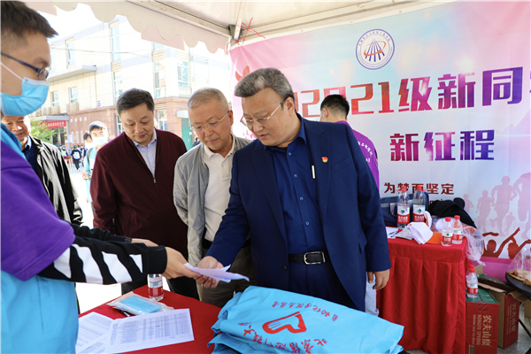 上午,校党委书记王传亮,校党委副书记、校长王永生来到迎新现场指导慰问。校党委副书记周志成、副校长方德英及相关职能部门负责人一同慰问。