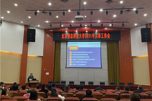 10月20日下午,学校在小营校区报告厅召开人事工作会议。学校各职能部门负责人、各教学单位负责人、各单位(部门)具体负责人事工作的人员参加会议。校党委常委、副校长于世洁出席会议并讲话,会议由人事处处长谢新伟主持。