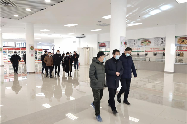 冷传才一行实地查看了新校区工程建设情况,先后考察了园林绿化、锅炉房和学生食堂等新校区配套项目完成情况,详细了解了新校区工程最新进展和搬迁工作安排。