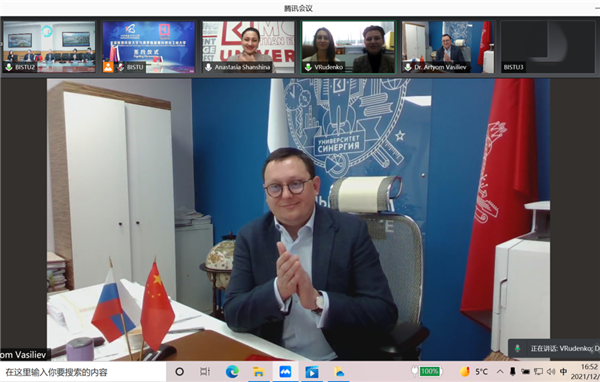 12月22日下午,学校党委副书记、校长王永生以视频方式与俄罗斯莫斯科财经工业大学(以下简称“协同大学”)校长阿尔乔姆·瓦西里耶夫举行会谈,并签署合作协议。会谈由副校长方德英主持。