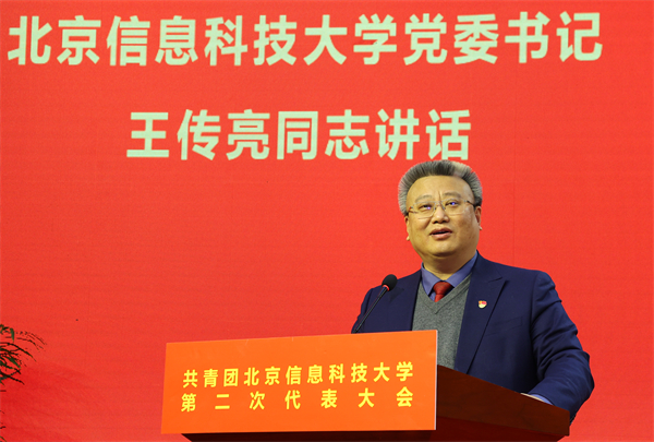 王传亮代表学校党委对大会的召开表示祝贺。他在讲话中指出,第一届团代会召开以来,北京信息科技大学共青团组织不忘初心,牢记使命,锐意改革,是学校党委的得力政治助手,是全校团员青年的可靠组织支柱,是学校与青年学生联系沟通的牢固桥梁纽带。王传亮指出,当前,我国正处于“两个一百年”奋斗目标的交汇点和学校“十四五”起步发展的新起点上,共青团要认识到当前学校工作面临的时代挑战和需要承担的时代使命,团结带领全校团员青年在实现中华民族伟大复兴中国梦的进程中不断开拓创新、奋发有为。王传亮对全校各级团组织、全体团干部和广大团员青年提出三点希望:各级团组织要坚持以政治建设为统领、聚焦主责主业;全体团干部要提高政治站位、坚守初心使命;广大团员青年要坚定理想信念、勇担青春使命。他强调,全体团干部要将个人的成长和党的事业、和学校的发展结合在一起,不弃微末、不舍寸功,一步一个脚印地成长为党的事业发展的中流砥柱。他希望各位代表要把握好学校事业发展的大局,以饱满的政治热情和严肃负责的态度,认真履行职责,积极主动地参与到学校治理体系中来。他勉励广大团员青年要以此次团代会为新的起点,与祖国共奋进,与时代同步伐,与学校齐发展,为把开元集团网站建设成为信息特色鲜明的高水平大学而努力奋斗!