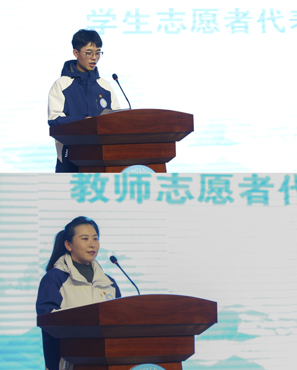 2019级信计专业本科生杨保荣、校团委古一老师先后作为学生志愿者代表和教师志愿者代表发言。