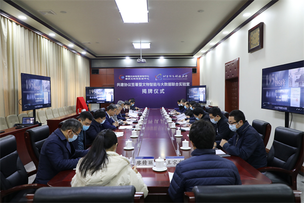 胡冰、刘铭威、王传亮、王永生共同为“文物智能与大数据联合实验室”揭牌。