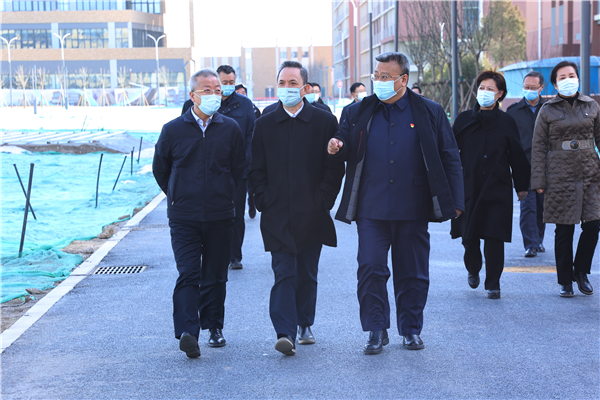 卢彦一行实地查看了新校区工程建设施工情况,以及交付使用区域的运行管理情况,详细询问了新校区建设搬迁面临的重点难点问题,并就相关工作进行了现场调度。