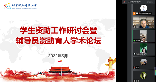 5月26日,学校在线上举办学生资助工作研讨会暨第三期辅导员资助育人学术论坛。校党委副书记周志成、相关职能部门负责人出席活动。北京市教育资产与财务管理事务中心副主任张梅、资助二科负责人单伟娜做客论坛。学工系统全体成员线上聆听。会议由学生处处长张景波主持。