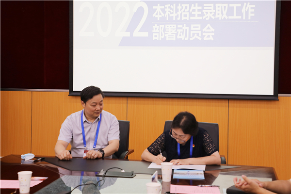 纪委办公室主任英树志组织签订《北京信息科技大学全日制普通本科招生工作责任书》。