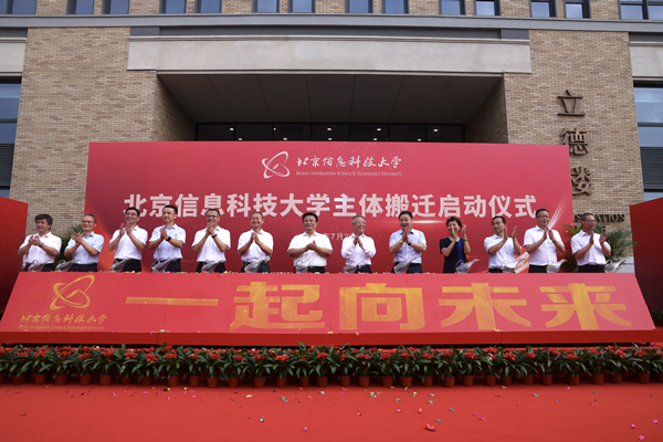 7月26日,北京信息科技大学在新校区举行东大门剪彩和校名石揭牌暨主体搬迁启动仪式,正式启动学校主体搬迁。全体在校领导班子成员,各职能部门、教学单位负责人和教职员工代表参加仪式。主体搬迁启动仪式由校党委副书记、校长王永生主持。东大门剪彩和校名石揭牌仪式由校党委常委、副校长陈昕主持。