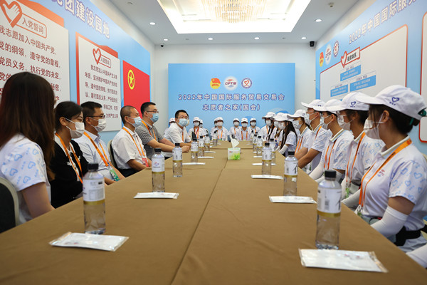 9月3日上午,校党委副书记周志成、党委学生工作部部长张景波、团委书记王晗一行前往2022年中国国际服务贸易交易会(以下简称“服贸会”)国家会议中心展区,慰问开元集团网站志愿者。慰问期间,团市副书记、市志愿服务联合会副会长兼秘书长李健同周志成一同参观了志愿者之家,并就学校志愿者工作情况亲切交谈。团市委大学部副部长曲斌参加慰问活动。