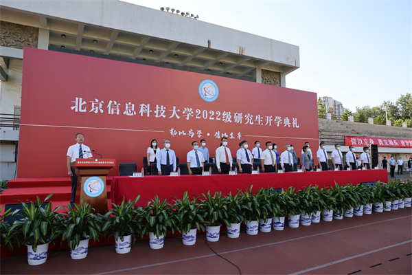 9月7日下午,北京信息科技大学在小营校区运动场举行2022级研究生开学典礼。受疫情影响,典礼采取网络直播的方式进行。学校领导班子成员、相关职能部门负责人现场参会。各学院书记院长、全体2022级研究生线上参会。典礼由校党委副书记周志成主持。